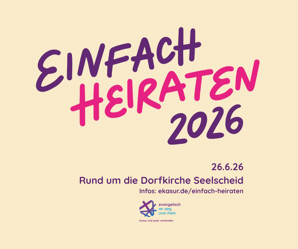 Direkt für den 26.6. in Seelscheid per Mail anmelden: einfachheiraten.ekasur@ekir.de